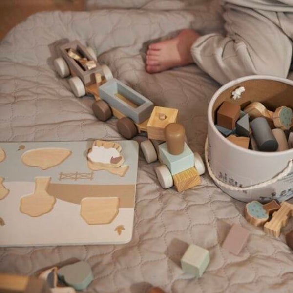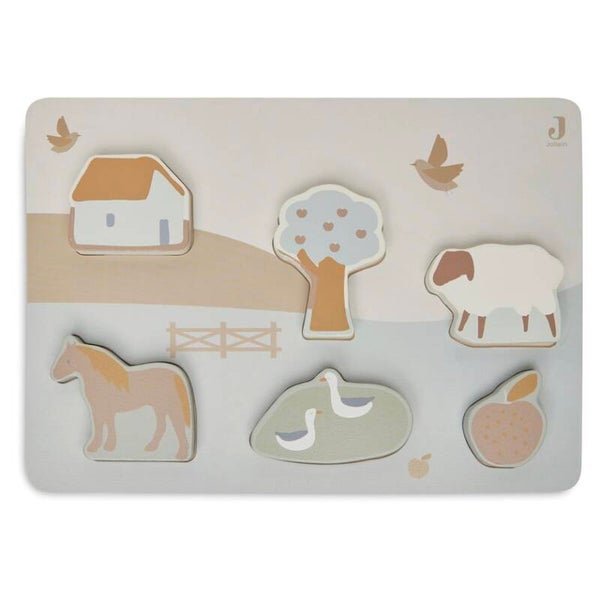 Een houten puzzel is altijd een goed idee! Deze leuke houten puzzel van 100% FSC hout heeft 6 verschillende stukken. Je kindje kan zich urenlang vermaken met de puzzel. En naast vermaak, is deze puzzel ook nog eens hartstikke goed voor de ontwikkeling van jouw kleintje. De puzzel bevat allerlei diertjes die je op de boerderij terugziet. De puzzelstukken zijn een stukje dikker zodat je kindje deze gemakkelijk kan pakken.